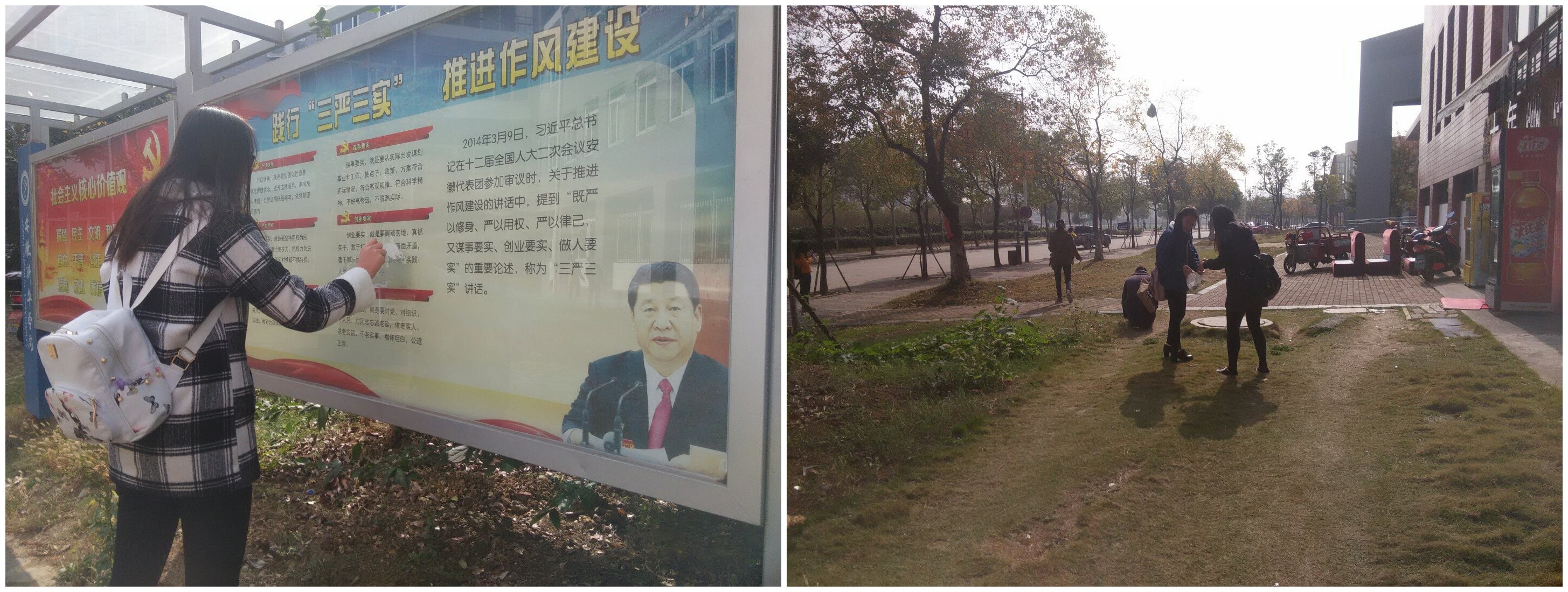 本网讯(通讯员:圣摇 摄影: 李四聪)为积极响应校园环境整治工作要求,药学院第三学生党支部全体成员从第11教学周开始,开展为期8周的义务劳动活动。活动内容包括清理药学院环境整治范围内的宣传栏、教学楼外墙壁、建筑垃圾、杂草、尘土及乱停放车辆等。本周的义务劳动由14药学1班的入党积极分子及预备党员率先发起,在全院起到表率作用。