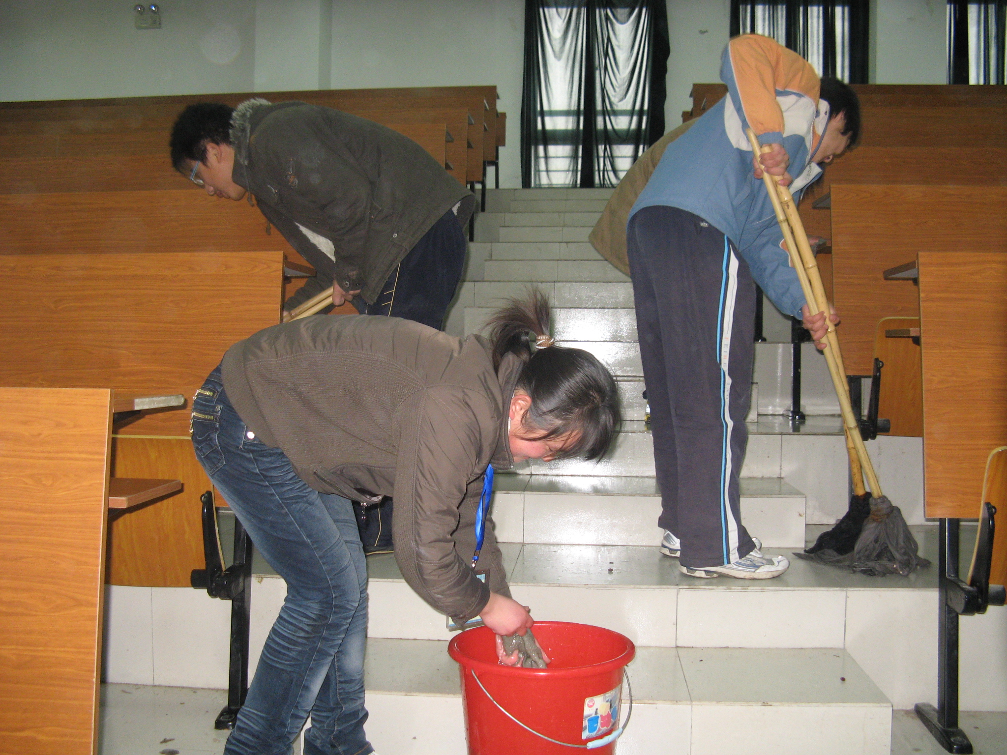 3月4日下午,根据本学期工作计划安排,药学院团总支学生会协同助理团、勤工助学中心开展了创建卫生、文明学习环境——打扫药学楼的主题活动。同学们的脸花了,手脏了,衣服湿了,额头上都是晶莹的汗珠。但大家的心情是愉悦的。两个小时的辛勤劳动,使得药学楼内焕然一新,以全新的面貌展现在我们面前,虽然每位同学的脸上都是一脸的疲惫,但看到劳动后的成果,大家的脸上都露出了灿烂的笑容。教室是我家,文明、卫生靠大家。爱护环境,人人有责,我们团总支学生会更要起到模范带头作用。通过本次活动,加强了团总支学生会内各部门之间的联系,增进了部门内部的交流,培养了大家的团队意识,为今后更好地开展工作奠定了基础。