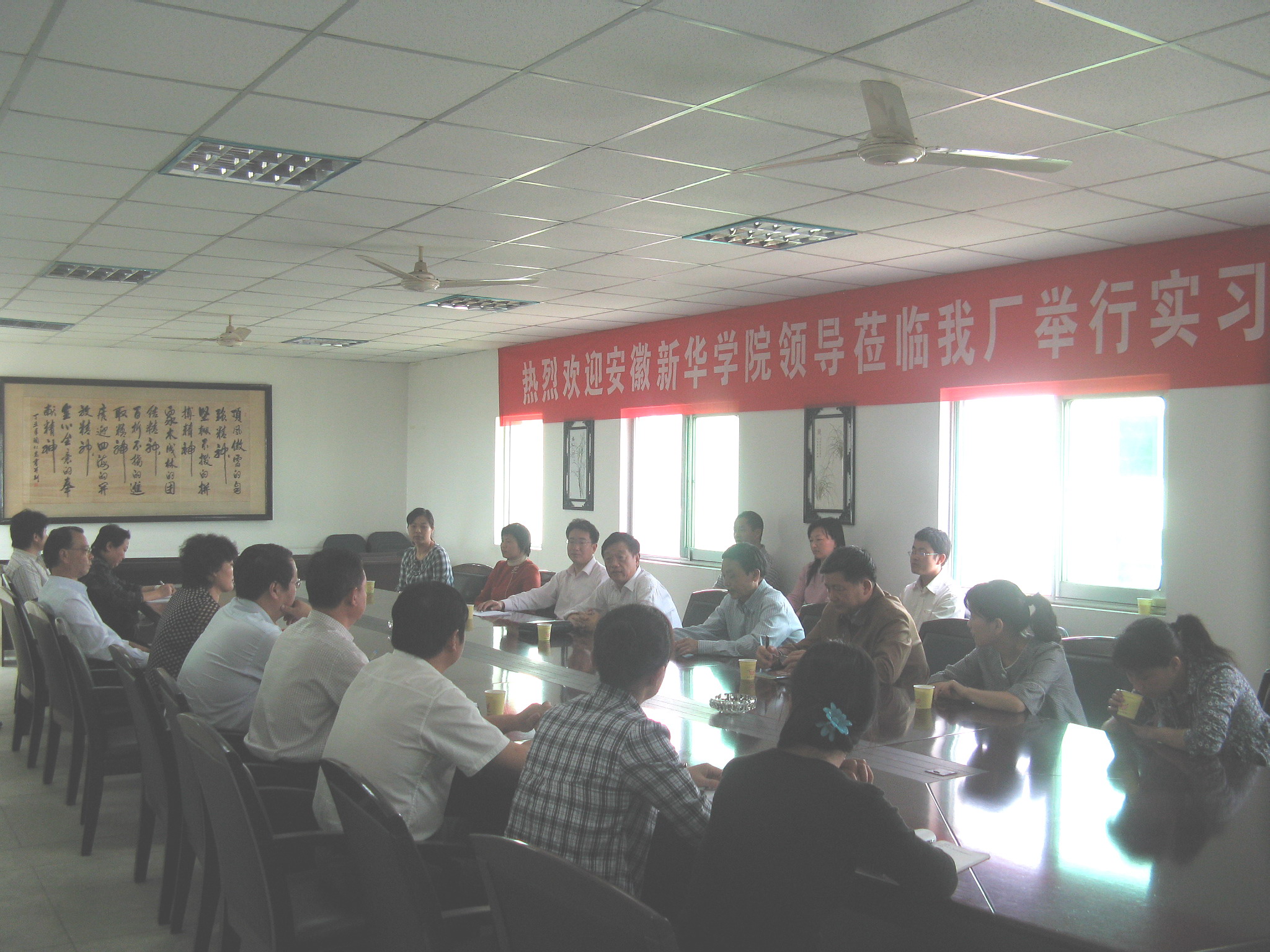 会后,国正药业有限公司领导同志陪同安徽新华学院领导及教师参观了国正药业GMP厂房。