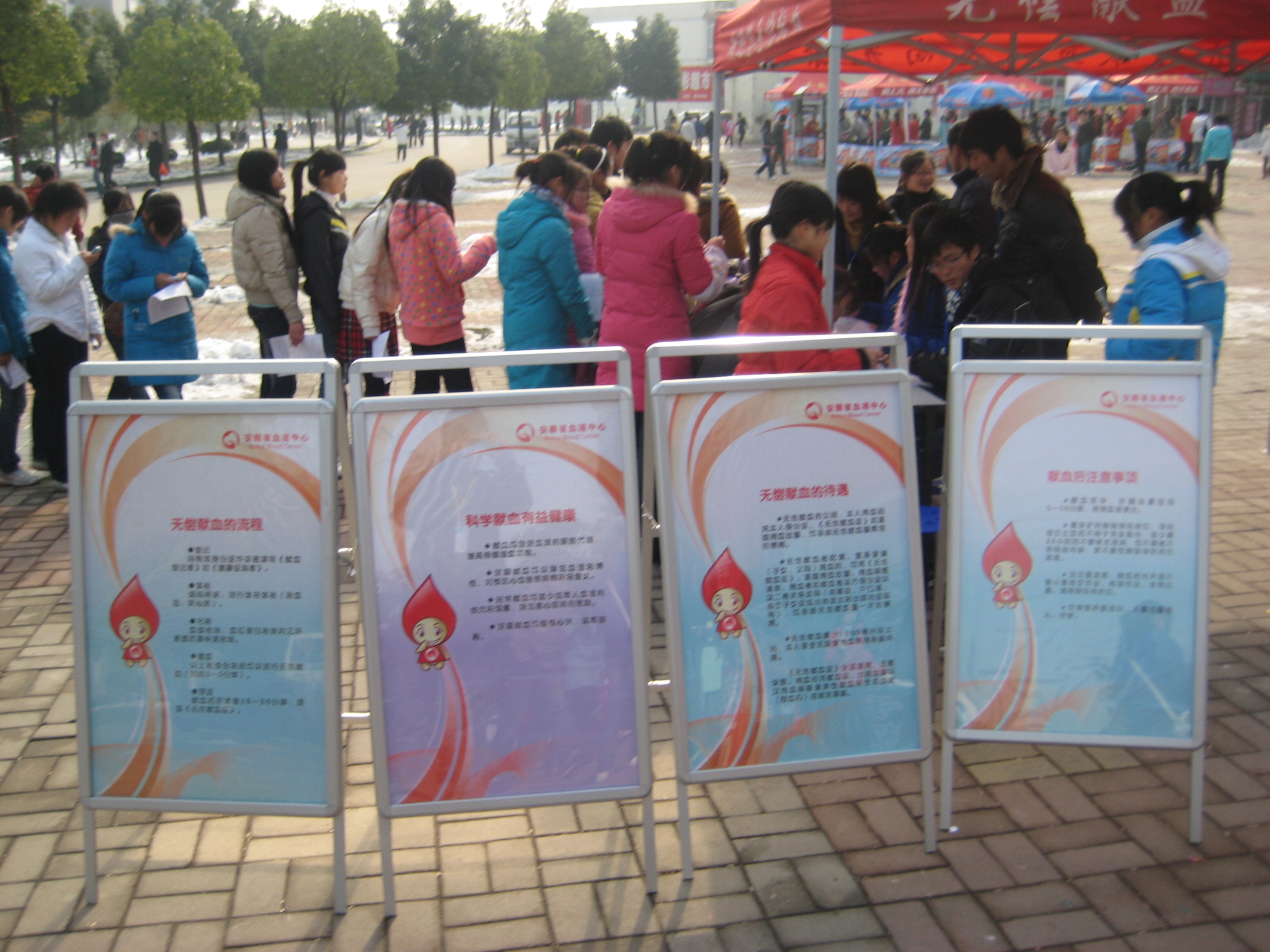 近日,药学院团总支学生会组织的爱心献血活动在雪后的新华校园内举行。本次活动的主题为“我献血,我健康,我快乐”。此次活动历时三天,在华园里取得了热烈的反响。