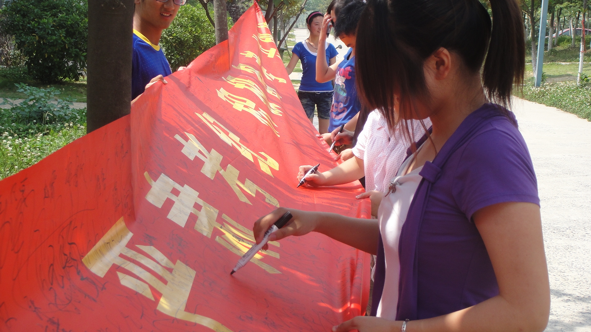 此次活动得到了广大同学的积极参与,同学们纷纷赶来在条幅上签下自己的名字,并纷纷表示“健康考风,文明考试从我做起;良好学风,文明校风从我做起”,自觉克服并抵制考试作弊行为,做一名文明诚信的学生,时刻牢记“厚德、求真、博学、创新”的校训,把时间和精力放在期末的复习考试上,考出真实水平,考出诚信风格,以自己的实际行动还考场一片纯净的天空。