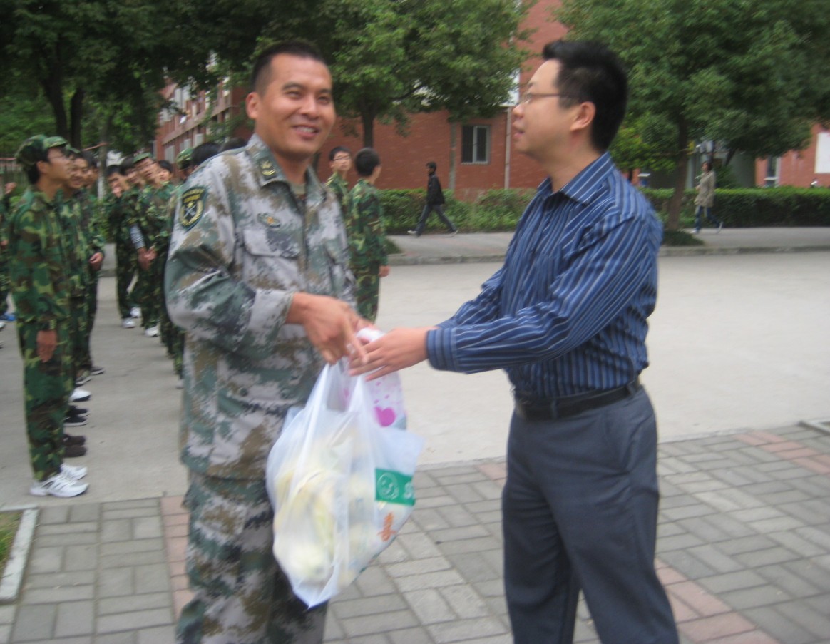9月16日上午,药学院行政副院长计勇、学管秘书钱静和新生辅导员一同前往新生军训场地看望慰问正在训练中的教官和2011级新生,并为他们送去水果、金嗓子喉宝等慰问品。