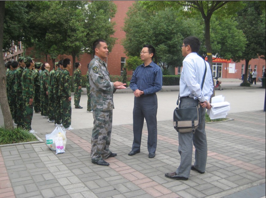 计勇代表药学院对三位教官表示亲切问候,对教官的辛勤工作给予了高度评价,并表示衷心的感谢,对在短短两周内取得的明显训练效果给予了充分肯定和赞扬。他说,承训部队官兵克服军训时间紧、内容多、任务重的困难,不辞劳苦,充分展现了人民军队过硬的军事素质和优良作风。希望教官继续对学生严格要求,严肃纪律,科学施训,不断提高军事训练质量;进一步加强思想教育和内务管理,切实锻炼新生的意志品质,强化新生的组织纪律性,提高新生的基础文明水平和自我管理能力,为他们今后的学习、生活打下坚实的基础。同时勉励参训的2011级新生要好好把握最后一周军训时间,继续保持积极向上的精神风貌,听从指挥,增强体质,砥砺意志和品格,为大学新征程和人生新起点奠定坚实基础。
