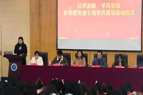 本网讯(通讯员: 赵影 姚顺程 黄千毓)为深入贯彻学校学风建设统一工作部署,培育优良学风,筑牢人才培养根基,2025年11月25日中午12:00,安徽新华学院药学院在学术报告厅隆重举行红药启航·学风引领——药学院党建引领学风建设启动仪式。药学院院长曹元应、院长助理白娟、院长助理赵影、学管秘书姚顺程、行政秘书阮月、辅导员老师李春杰、闫冰、陈欣萌、胡欣、陈玲,学风建设部全体成员,各班级班长、学习委员及入党积极分子、党员、发展对象代表共同参会,会议由姚顺程主持。