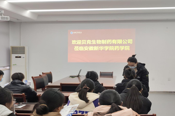 宣讲环节中,贝克生物人力资源总监立足生物医药行业蓬勃发展的时代浪潮,全方位勾勒了公司深耕领域的发展蓝图、深耕多年的核心技术壁垒与多元布局的产业矩阵,更聚焦药学院专业特色,精准解读了研发工程师、质量检测专员、生产运营管理等核心岗位的招录需求,为学子们明晰了岗位适配方向。针对青年学子最为关切的职业成长路径,企业代表细致阐释了“双导师带教、全链路轮岗、定制化专项培育”的系统化人才培养体系,辅以完善的五险一金、丰厚绩效嘉奖、阶梯式年度晋升及多元福利保障,全方位彰显企业对人才的珍视与赋能,让在场学子对投身生物医药领域、扎根贝克发展的前景满怀憧憬,心中理想蓝图愈发清晰。